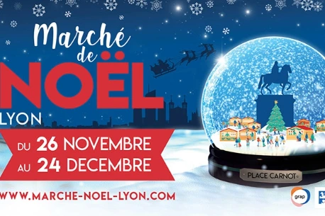 Le marché de Noël traditionnel de Lyon avec ses chalets et animations festives.